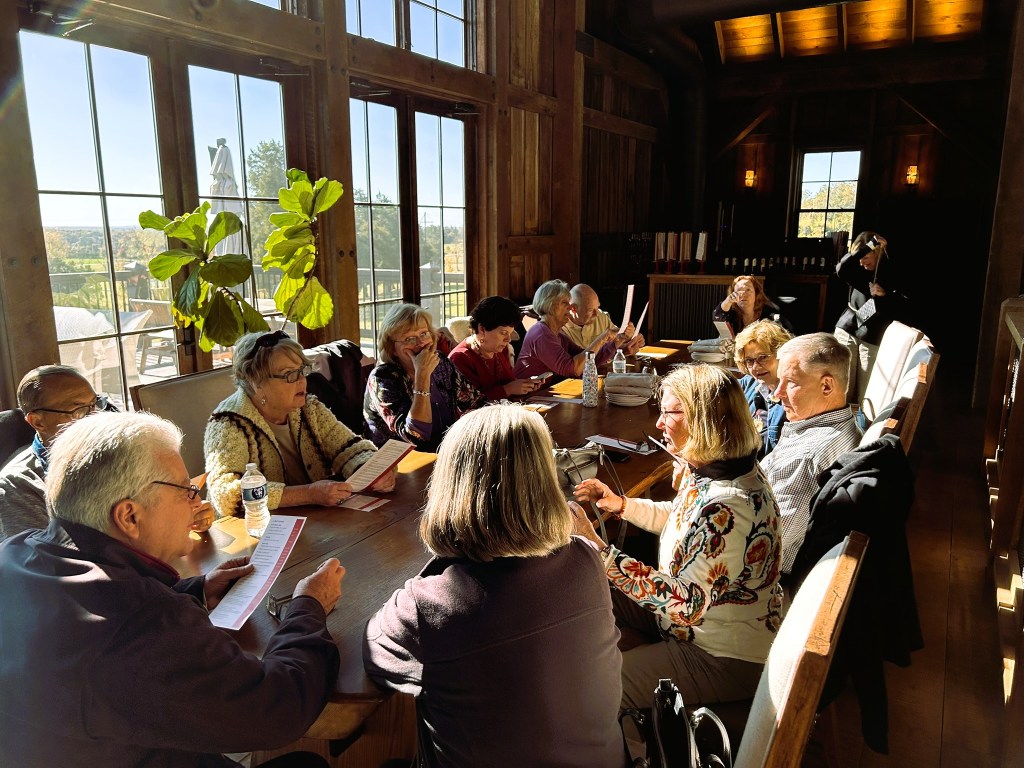 What an amazing day traveling from the Clubhouse to 3 Amazing Wineries in Keswick, VA. A small (yet mighty) group of 16 enthusiastic wine lovers embarked on this unforgettable journey, where we visited the beautiful Southwest Mountains Vineyards, the enchanting Keswick Vineyards, and the charming Merrie Mill Farm Vineyards! Each stop offered a unique selection of exquisite wines and breathtaking views, allowing us to savor the delightful flavors of the region. As we explored the scenic landscapes and indulged in delicious tastings, laughter and camaraderie filled the air, making the experience even more memorable. See the fun below, and we hope to see you all next time for another exciting adventure among the vines!